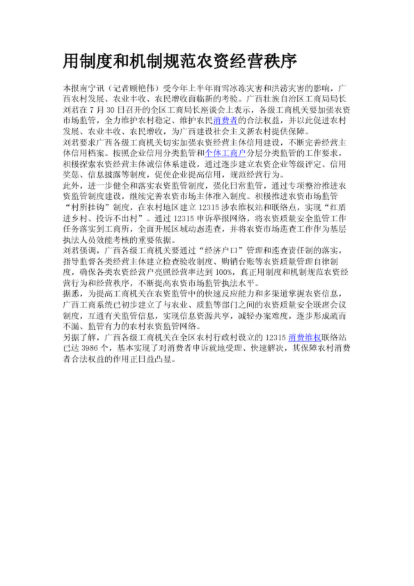 用制度和機(jī)制規(guī)范農(nóng)資經(jīng)營(yíng)秩序