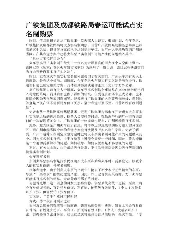 廣鐵集團及成都鐵路局春運可能試點實名制購票