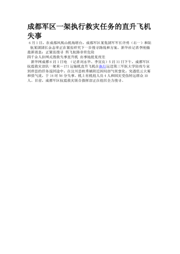 成都軍區一架執行救災任務的直升飛機失事(16.70KB)