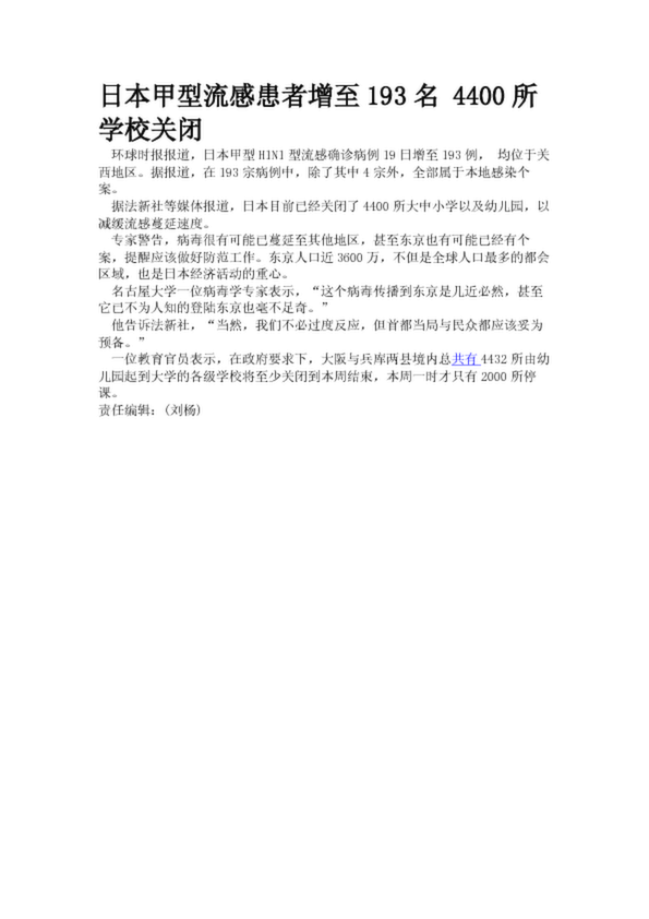 日本甲型流感患者增至193名 4400所學校關閉(17.59KB)