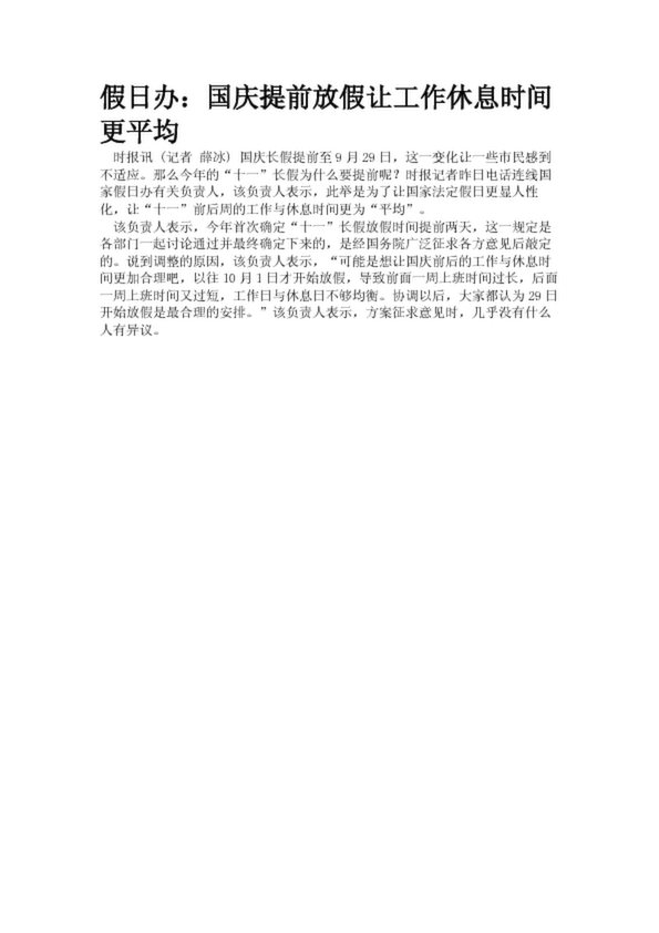假日辦:國慶提前放假讓工作休息時間更平均