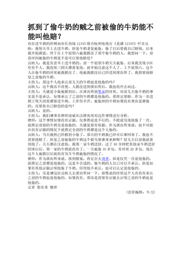 抓到了偷牛奶的賊之前被偷的牛奶能不能叫他賠?