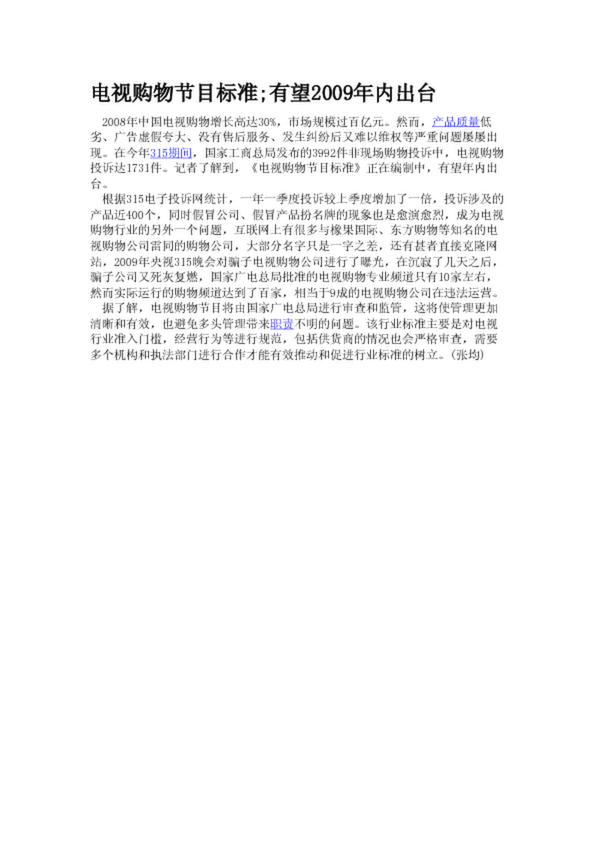 電視購物節(jié)目標(biāo)準(zhǔn);有望2009年內(nèi)出臺