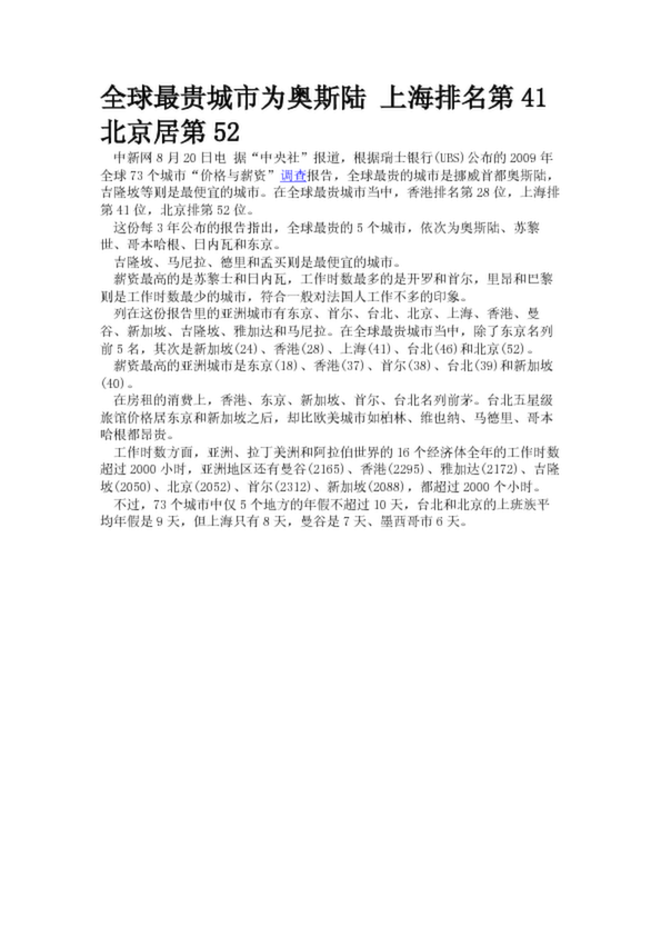 全球最貴城市為奧斯陸 上海排名第41北京居第52