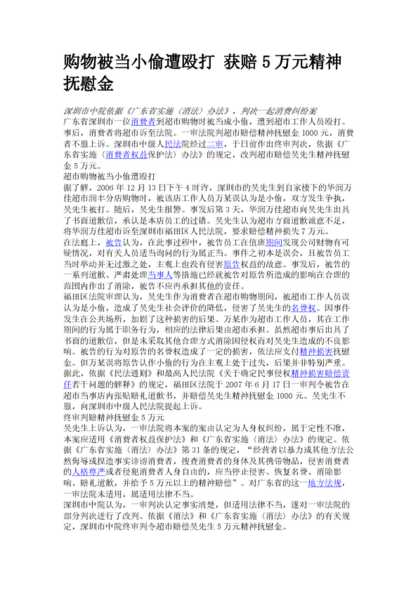 購物被當小偷遭毆打 獲賠5萬元精神撫慰金(25.97KB)